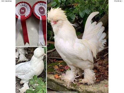 👀RARE PURE BREED 6 FERTILE “SULTAN” small poultry Hatching Eggs Tested ——Previous generation both Cockerel and Hen were 1st prize winners🥇…. (No shows for several years because of the Bird Flu…sadly)…..see photos….. PLEASE NOTE: UK POSTING ONLY Please check for availability.....🤞🏻